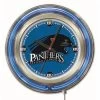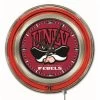 Our neon-accented Logo Clocks are the perfect way to show your team pride. Chrome casing and a team specific neon ring accent a custom printed clock face, lit up by an brilliant white, inner neon ring. Neon ring is easily turned on and off with a pull chain on the bottom of the clock, saving you the hassle of plugging it in and unplugging it. Accurate quartz movement is powered by a single, AA battery (not included). Whether purchasing as a gift for a recent grad, sports super fan, or for yourself, you can take satisfaction knowing you’re buying a clock that is proudly made by the Holland Bar Stool Company, Holland, MI.
