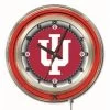 Our neon-accented Logo Clocks are the perfect way to show your school pride. Chrome casing and a team specific neon ring accent a custom printed clock face, lit up by an brilliant white, inner neon ring. Neon ring is easily turned on and off with a pull chain on the bottom of the clock, saving you the hassle of plugging it in and unplugging it. Accurate quartz movement is powered by a single, AA battery (not included). Whether purchasing as a gift for a recent grad, sports super fan, or for yourself, you can take satisfaction knowing you’re buying a clock that is proudly made by the Holland Bar Stool Company, Holland, MI.