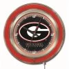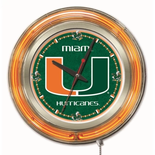 Our neon-accented Logo Clocks are the perfect way to show your school pride. Chrome casing and a team specific neon ring accent a custom printed clock face, lit up by an brilliant white, inner neon ring. Neon ring is easily turned on and off with a pull chain on the bottom of the clock, saving you the hassle of plugging it in and unplugging it. Accurate quartz movement is powered by a single, AA battery (not included). Whether purchasing as a gift for a recent grad, sports super fan, or for yourself, you can take satisfaction knowing you’re buying a clock that is proudly made by the Holland Bar Stool Company, Holland, MI.