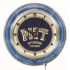 Our neon-accented Logo Clocks are the perfect way to show your team pride. Chrome casing and a team specific neon ring accent a custom printed clock face, lit up by an brilliant white, inner neon ring. Neon ring is easily turned on and off with a pull chain on the bottom of the clock, saving you the hassle of plugging it in and unplugging it. Accurate quartz movement is powered by a single, AA battery (not included). Whether purchasing as a gift for a recent grad, sports super fan, or for yourself, you can take satisfaction knowing you’re buying a clock that is proudly made by the Holland Bar Stool Company, Holland, MI.