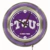 Our neon-accented Logo Clocks are the perfect way to show your school pride. Chrome casing and a team specific neon ring accent a custom printed clock face, lit up by an brilliant white, inner neon ring. Neon ring is easily turned on and off with a pull chain on the bottom of the clock, saving you the hassle of plugging it in and unplugging it. Accurate quartz movement is powered by a single, AA battery (not included). Whether purchasing as a gift for a recent grad, sports super fan, or for yourself, you can take satisfaction knowing you’re buying a clock that is proudly made by the Holland Bar Stool Company, Holland, MI.