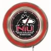 Our neon-accented Logo Clocks are the perfect way to show your school pride. Chrome casing and a team specific neon ring accent a custom printed clock face, lit up by an brilliant white, inner neon ring. Neon ring is easily turned on and off with a pull chain on the bottom of the clock, saving you the hassle of plugging it in and unplugging it. Accurate quartz movement is powered by a single, AA battery (not included). Whether purchasing as a gift for a recent grad, sports super fan, or for yourself, you can take satisfaction knowing you’re buying a clock that is proudly made by the Holland Bar Stool Company, Holland, MI.