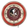 Our neon-accented Logo Clocks are the perfect way to show your school pride. Chrome casing and a team specific neon ring accent a custom printed clock face, lit up by an brilliant white, inner neon ring. Neon ring is easily turned on and off with a pull chain on the bottom of the clock, saving you the hassle of plugging it in and unplugging it. Accurate quartz movement is powered by a single, AA battery (not included). Whether purchasing as a gift for a recent grad, sports super fan, or for yourself, you can take satisfaction knowing you’re buying a clock that is proudly made by the Holland Bar Stool Company, Holland, MI.