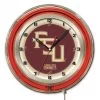 Our neon-accented Logo Clocks are the perfect way to show your school pride. Chrome casing and a team specific neon ring accent a custom printed clock face, lit up by an brilliant white, inner neon ring. Neon ring is easily turned on and off with a pull chain on the bottom of the clock, saving you the hassle of plugging it in and unplugging it. Accurate quartz movement is powered by a single, AA battery (not included). Whether purchasing as a gift for a recent grad, sports super fan, or for yourself, you can take satisfaction knowing you’re buying a clock that is proudly made by the Holland Bar Stool Company, Holland, MI.