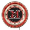 Our neon-accented Logo Clocks are the perfect way to show your school pride. Chrome casing and a team specific neon ring accent a custom printed clock face, lit up by an brilliant white, inner neon ring. Neon ring is easily turned on and off with a pull chain on the bottom of the clock, saving you the hassle of plugging it in and unplugging it. Accurate quartz movement is powered by a single, AA battery (not included). Whether purchasing as a gift for a recent grad, sports super fan, or for yourself, you can take satisfaction knowing you’re buying a clock that is proudly made by the Holland Bar Stool Company, Holland, MI.