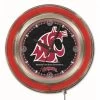 Our neon-accented Logo Clocks are the perfect way to show your school pride. Chrome casing and a team specific neon ring accent a custom printed clock face, lit up by an brilliant white, inner neon ring. Neon ring is easily turned on and off with a pull chain on the bottom of the clock, saving you the hassle of plugging it in and unplugging it. Accurate quartz movement is powered by a single, AA battery (not included). Whether purchasing as a gift for a recent grad, sports super fan, or for yourself, you can take satisfaction knowing you’re buying a clock that is proudly made by the Holland Bar Stool Company, Holland, MI.
