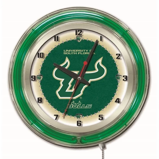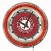 Our neon-accented Logo Clocks are the perfect way to show your school pride. Chrome casing and a team specific neon ring accent a custom printed clock face, lit up by an brilliant white, inner neon ring. Neon ring is easily turned on and off with a pull chain on the bottom of the clock, saving you the hassle of plugging it in and unplugging it. Accurate quartz movement is powered by a single, AA battery (not included). Whether purchasing as a gift for a recent grad, sports super fan, or for yourself, you can take satisfaction knowing you’re buying a clock that is proudly made by the Holland Bar Stool Company, Holland, MI.