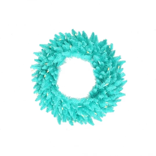 24 inch Aqua Fir Wreath: Aqua LED Lights