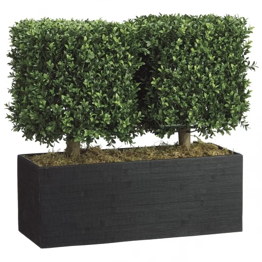 Create a colorful barrier between rooms or under windows with these indoor hedges. This 24 inch Boxwood Topiary comes in a rectangular Bamboo Container that reflects the shape of this manicured artificial plant. Synthetic moss finishes off the look in a refined way.