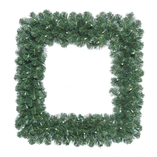 24 inch Oregon Fir Square Wreath: Clear LED Lights