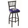Made for the ultimate sports fan, impress your buddies with this knockout from Holland Bar Stool. This contemporary 25 inch Black Arkansas Swivel Bar Stool has a defined ladder style back that doesnt just add comfort, but sophistication. Holland Bar Stool uses a detailed screen print process that applies specially formulated epoxy-vinyl ink in numerous stages to produce a sharp, crisp, clear image of your desired logo. You can not find a higher quality logo stool on the market. The plating grade steel used to build the frame is commercial quality, so it will withstand the abuse of the rowdiest of friends for years to come. The structure is powder-coated black wrinkle to ensure a rich, sleek, long lasting finish. Construction of this framework is built tough, utilizing solid welds. If you are going to finish your bar or game room, do it right with a Holland Bar Stool.