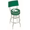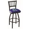 Made for the ultimate sports fan, impress your buddies with this knockout from Holland Bar Stool. This contemporary 25 inch Black Florida Swivel Bar Stool with Back has a black wrinkle single-ring base and a cushioned back to achieve maximum comfort and support. Holland Bar Stool uses a detailed screen print process that applies specially formulated epoxy-vinyl ink in numerous stages to produce a sharp, crisp, clear image of your teams emblem. You can not find a higher quality logo stool on the market. The plating grade steel used to build the frame is commercial quality, so it will withstand the abuse of the rowdiest of friends for years to come. The structure is powder-coated to ensure a rich, sleek, long lasting finish. Construction of this framework is built tough, utilizing solid mig welds. If you are going to finish your bar or game room, do it right with a Holland Bar Stool.