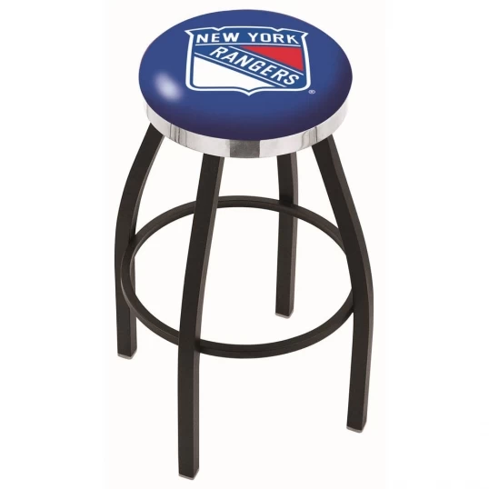 25 Inch Black New York Rangers Swivel Bar Stool W/ Chrome Accent Ring