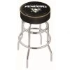 Made for the ultimate sports fan, impress your buddies with this knockout from Holland Bar Stool. This contemporary 25 inch Black Toronto Maple Leafs Swivel Bar Stool with Back has a black wrinkle single-ring base and a cushioned back to achieve maximum comfort and support. Holland Bar Stool uses a detailed screen print process that applies specially formulated epoxy-vinyl ink in numerous stages to produce a sharp, crisp, clear image of your teams emblem. You can not find a higher quality logo stool on the market. The plating grade steel used to build the frame is commercial quality, so it will withstand the abuse of the rowdiest of friends for years to come. The structure is powder-coated to ensure a rich, sleek, long lasting finish. Construction of this framework is built tough, utilizing solid mig welds. If you are going to finish your bar or game room, do it right with a Holland Bar Stool.
