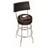 Made for the ultimate sports fan, impress your buddies with this knockout from Holland Bar Stool. This contemporary 25 inch Black Virginia Swivel Bar Stool has a jailhouse styled back that doesnt just add comfort, but sophistication. Holland Bar Stool uses a detailed screen print process that applies specially formulated epoxy-vinyl ink in numerous stages to produce a sharp, crisp, clear image of your desired logo. You can not find a higher quality logo stool on the market. The plating grade steel used to build the frame is commercial quality, so it will withstand the abuse of the rowdiest of friends for years to come. The structure is powder-coated black wrinkle to ensure a rich, sleek, long lasting finish. Construction of this framework is built tough, utilizing solid welds. If you are going to finish your bar or game room, do it right with a Holland Bar Stool.