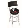 Made for the ultimate sports fan, impress your buddies with this knockout from Holland Bar Stool. This contemporary 25 inch Oklahoma State Logo Swivel Bar Stool with Chrome Base has a single-ring chrome base with a 4 inch cushion for a fashion that says sleek and simple. Holland Bar Stool uses a detailed screen print process that applies specially formulated epoxy-vinyl ink in numerous stages to produce a sharp, crisp, clear image of your desired logo. You can not find a higher quality logo stool on the market. The plating grade steel used to build the frame is commercial quality, so it will withstand the abuse of the rowdiest of friends for years to come. The structure is triple chrome plated to ensure a rich, deep finish that will last ages. Construction of this framework is built tough, utilizing only solid mig welds. If you are going to finish your bar or game room, do it right with a Holland Bar Stool.