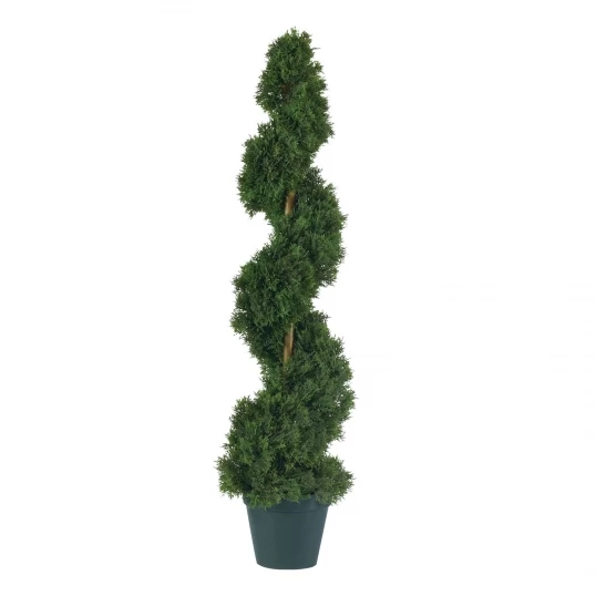 Add a nice piece of work into your home and make it yours. Topiary is a beautiful type of work. Topiary is a type of art form where plants require clipping of tree twigs to develop and keep the maintenance of the defined shape. The real plants used for topiary are evergreen, and have small tiny leaves or a lot of needles. Sometimes there will be shaped wire cages, but traditional topiary involves patience and firm hand. There is a big deal of work that goes into the caring for a topiary plant. The plants will need to be kept moist, but not to the point where they are being over-watered. Sometimes you will need touch to the soil to figure out when to water. A big portion of plants will need a good amount of light when placed indoors. You will need to fertilize monthly while the real living topiary plant is growing. The artificial topiary plants will not disturb your environment by growing all over the place where it is unwanted. This is why this is perfect for someone wanting all of the beauty of a real plant, but not the hard work that comes with it. The plant will remain in the exact same spot every day and all year long until you decide to move the plant elsewhere. The cedar spiral topiary can easily be moved anywhere in your home without the harm of them being damaged. There is no need you replanting them, or digging up the plant to move it to a new location in the home. You can move them anywhere you would like. The artificial plants do not require pesticides which can negatively affect the environment. The cedar spiral topiary artificial plant does not require water, and are very good for people who can be allergic to plants. The artificial plants also do not require sunlight. You can place these plants in multiple places so you can inquire a classy look in your home. It is very simple to change the style you are wanting to accomplish. This is why you need the 3 foot cedar spiral topiary tree. You can get excited for the amazing silk creation and trunk that has a nice appeal. Your guest will fall in love with your life like plant. This will add a bit of life and lushness to your home. You will be able to entertain people at your place and everyone will be asking about your realistic looking topiary plant. The 3 foot cedar spiral topiary will be a plant that requires not as much work as a living plant, everyone will want to know your secrets. This is why this plant is so great. You need to buy this 3 foot cedar spiral topiary plant to place in your home. There is no water required!