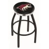 Made for the ultimate sports fan, impress your buddies with this knockout from Holland Bar Stool. This contemporary 30 inch Black Virginia Swivel Counter Stool with Back has a black wrinkle single-ring base and a cushioned back to achieve maximum comfort and support. Holland Bar Stool uses a detailed screen print process that applies specially formulated epoxy-vinyl ink in numerous stages to produce a sharp, crisp, clear image of your teams emblem. You can not find a higher quality logo stool on the market. The plating grade steel used to build the frame is commercial quality, so it will withstand the abuse of the rowdiest of friends for years to come. The structure is powder-coated to ensure a rich, sleek, long lasting finish. Construction of this framework is built tough, utilizing solid mig welds. If you are going to finish your bar or game room, do it right with a Holland Bar Stool.