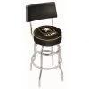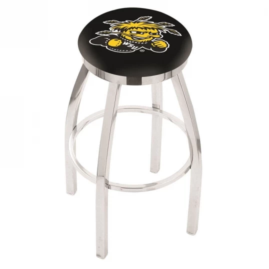 Made for the ultimate sports fan, impress your buddies with this knockout from Holland Bar Stool. This contemporary 30 inch Chrome Wichita State Swivel Counter Stool with Accent Ring has a single-ring chrome base with a 2.5 inch cushion and a chrome accent ring that helps the seat to pop-out at first glance. Holland Bar Stool uses a detailed screen print process that applies specially formulated epoxy-vinyl ink in numerous stages to produce a sharp, crisp, clear image of your desired logo. You can not find a higher quality logo stool on the market. The plating grade steel used to build the frame is commercial quality, so it will withstand the abuse of the rowdiest of friends for years to come. The structure is triple chrome plated to ensure a rich, sleek, long lasting finish. Construction of this framework is built tough, utilizing solid mig welds. If you are going to finish your bar or game room, do it right with a Holland Bar Stool.