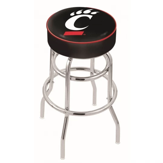 Made for the ultimate sports fan, impress your buddies with this knockout from Holland Bar Stool. This contemporary 30 inch Cincinnati 2-Ring Swivel Counter Stool with Chrome Base has a 4 inch cushion with a tough double-ring base and a chrome finish. Holland Bar Stool uses a detailed screen print process that applies specially formulated epoxy-vinyl ink in numerous stages to produce a sharp, crisp, clear image of your desired logo. You can not find a higher quality logo stool on the market. The structure is triple chrome-plated to ensure a rich, polished finish that will last ages. If you are going to finish your bar or game room, do it right with a Holland Bar Stool.