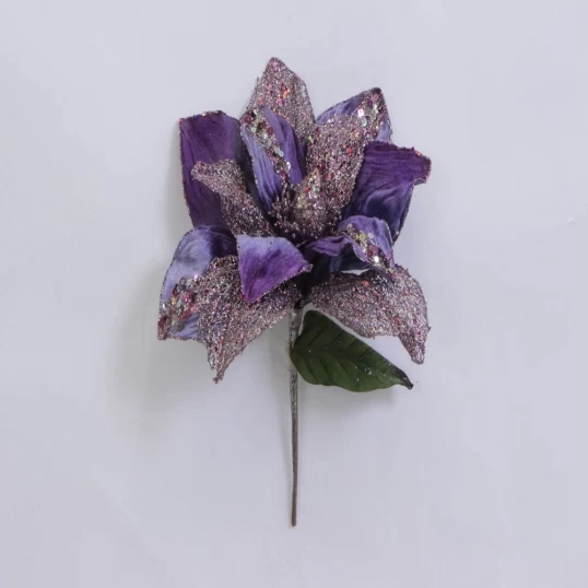 31 Inch Purple Glitter Magnolia Flower Pick With 13 Inch Flower