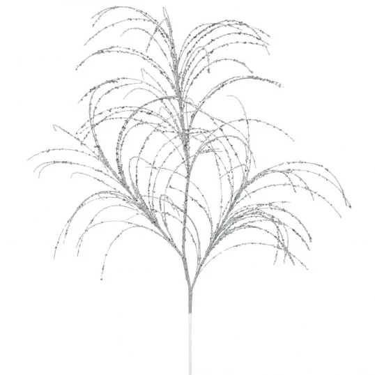 34 Inch Silver Glitter Grass Spray: Set Of 6