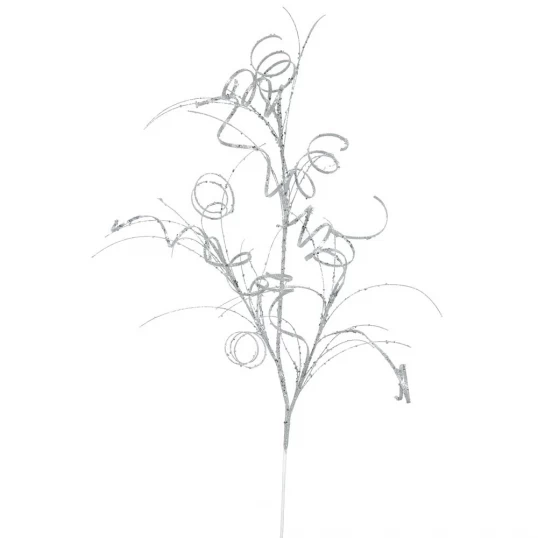 35 Inch Silver Glitter Curly Spray: Set Of 6