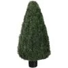 Bring this tutoned green Bay Cone Topiary into your home or office to add beautiful, life-like decor. It is a lovely topiary to frame an entryway or fireplace. This artificial tree is picture perfect without any mess!