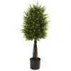 Artificial outdoor topiary will add a creative accent to the front entrance of your home or business. 5 foot outdoor Laurel Cone topiary can be installed directly into the ground for a natural look or in a decorative planter. Our outdoor artificial topiary are infused with a UV inhibitor that is designed to protect against harmful UV rays, and they are designed to withstand average wind and rain exposure.