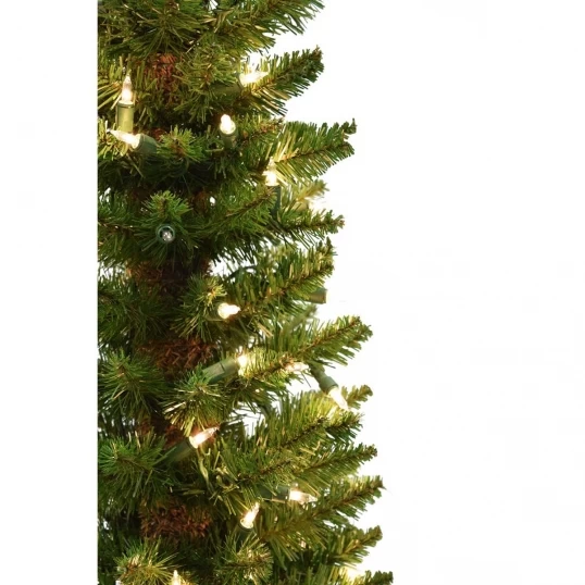 You can buy as many trees as you like when you buy this pencil shaped, Whippet Pine Christmas Tree. The extra thin shape is great for smaller spaces or framing a door. You can create your own small Christmas tree forest scene with these or corners. This tree comes in three height options and looks great when you cluster them together!