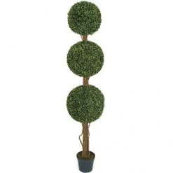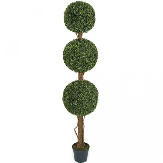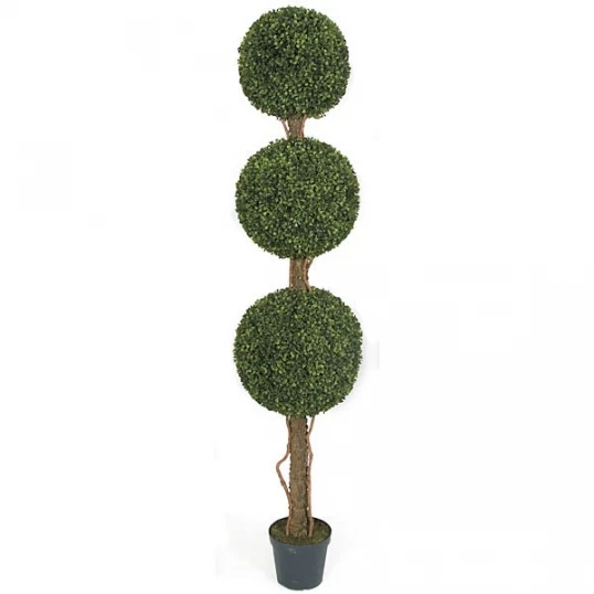 60 inch Artificial Outdoor Boxwood Triple Ball Topiary: Potted