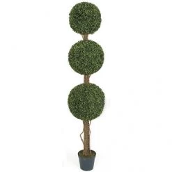 60 Inch Artificial Outdoor Boxwood Triple Ball Topiary: Potted