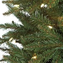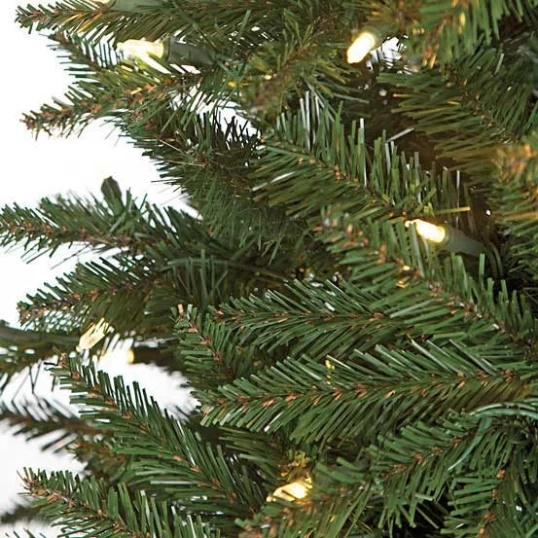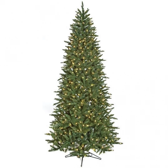 This slimmer Christmas Tree is ideal for tall ceilings and narrow spaces. This 9 foot tree will look elegant and warming in any room you choose to use it. This tree is conveniently pre-lit with Clear LEDs so that you never have to mess with untangling lights again.
