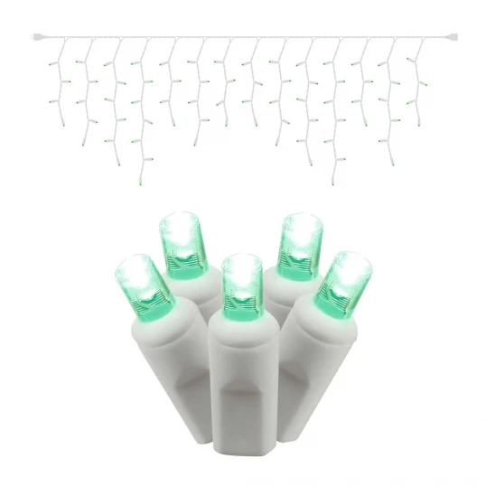 9 foot Wide Angle White Icicle LED Strand: Green Lights
