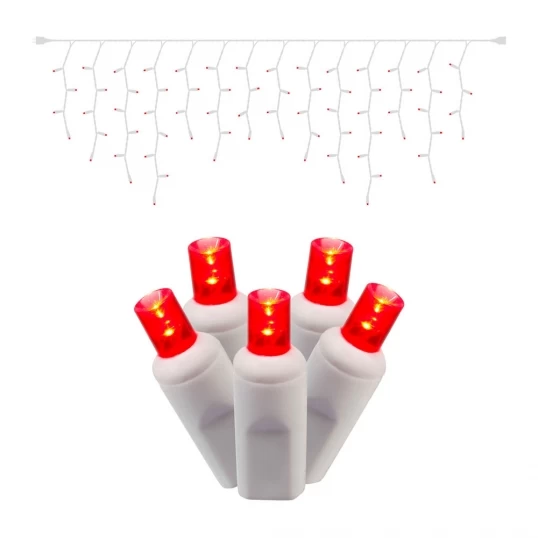 9 foot Wide Angle White Icicle LED Strand: Red Lights
