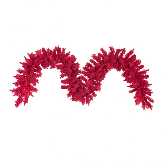 9 Foot X 14 Inch Unlit Flocked Red Fir Garland: Unlit