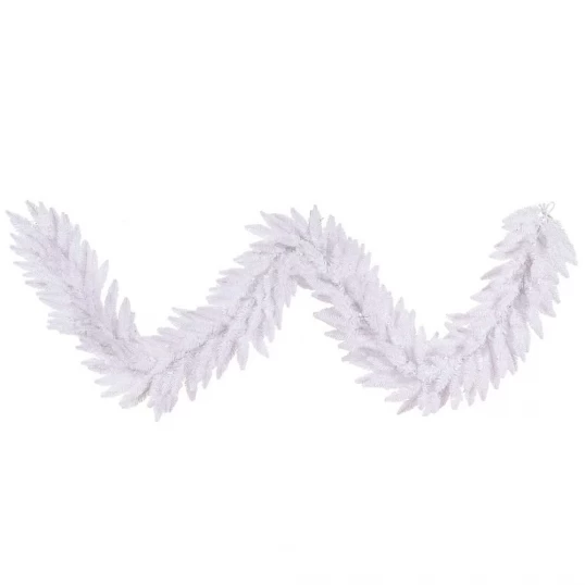 9 foot x 14 inch White Fir Garland: Unlit. The White Fir Garland is stunning! This garland allows you to decorate for the holidays in chic style. It beautifully supplements grays, blacks, and dark wood colors.