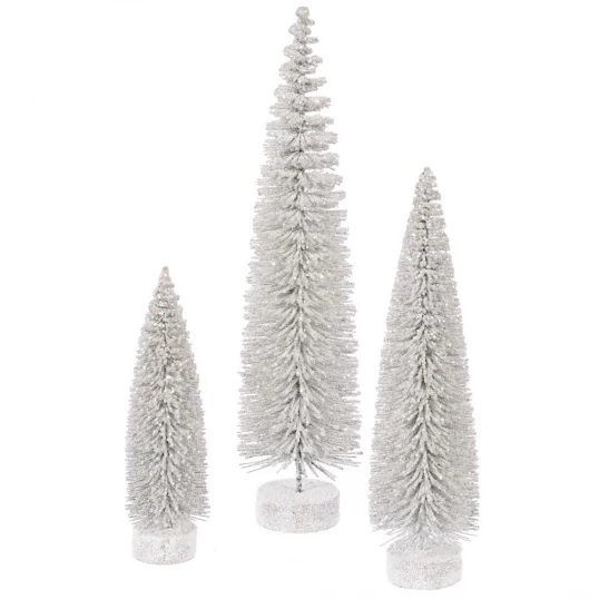 White Artificial Oval Tree (set of 3): 12 inch, 16 inch, 20 inch. Small artificial trees instantly dress up a mantle, bookshelf, or table for Christmas. This trio of miniature trees comes in a variety of sizes and colors, making incorporating them into your holiday d�cor easy. Use all three trees together or separate them to use in different rooms of your home.